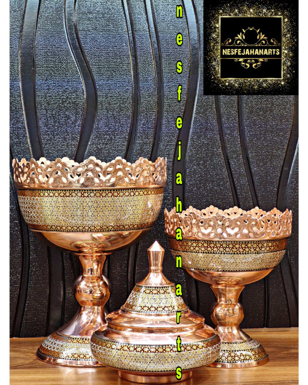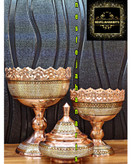 «آجیلخوری مس و خاتم» آقاجانی در اندازه و ارتفاع متنوع و متفاوت مناسب با هر نوع سلیقه، کاربرد و چیدمان طراحی و ساخته شده است.