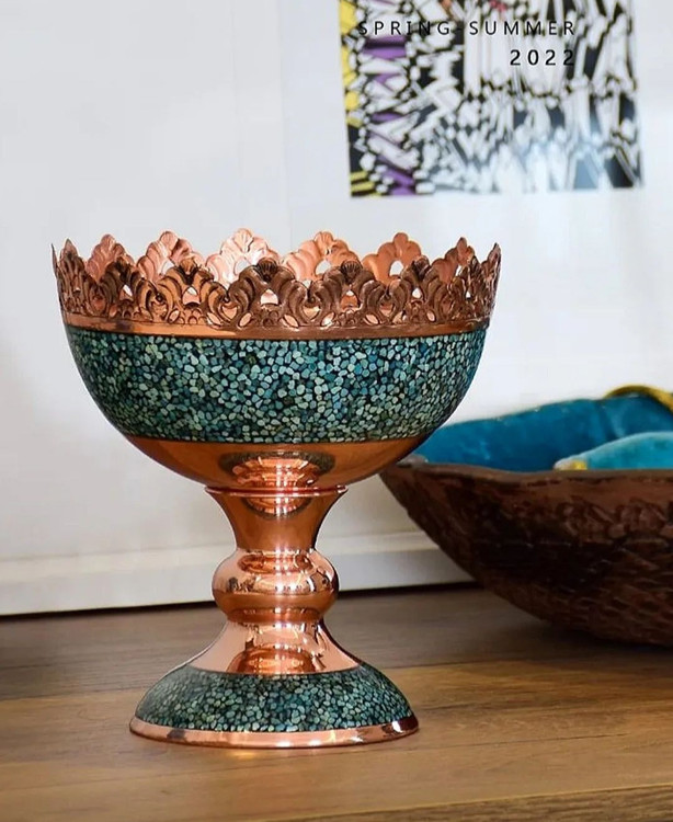 مس از فلزات ارزشمندی است که به دلیل خواص و ویژگیهای خاص و منحصر به فرد یکی از باکیفیتترین فلزات تزیینی است که زیبایی خاصی به خانه شما میبخشد. سنگ فیروزه نیز یکی از محبوبترین سنگهای قدیمی است که دارای انواع مختلفی است و بر طبق انواعی که دارد، ارزشهای مختلفی به آن داده میشود. فیروزه سمبلی از آرامش، بخشش و مهربانی است.