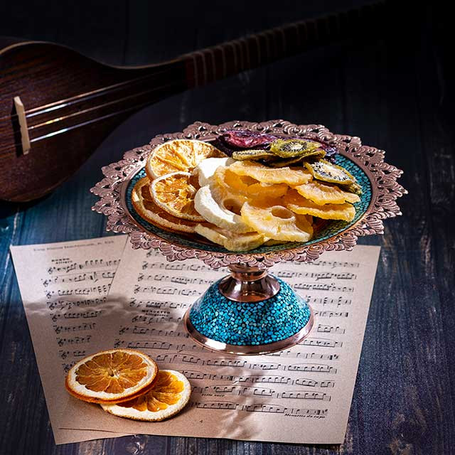 در اوقات شیرین شما جای «شیرینیخوری فیروزهکوب» آقاجانی خالی است. ترکیبی چشمنواز از مس ناب و فیروزهی اصل نیشابور، درخششی که برگرفته از هنر دست هنرمندان ایرانی است.