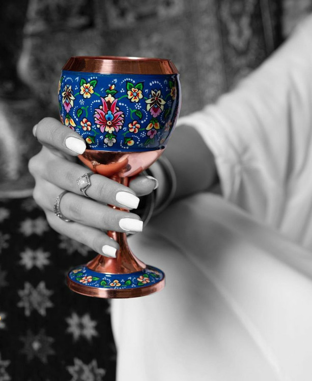 جام فرحبخشی که با نگارگری اصیل ایرانی آذین شده است. این محصول در دو اندازه متفاوت متناسب با سلیقهی شما تولید شده است.